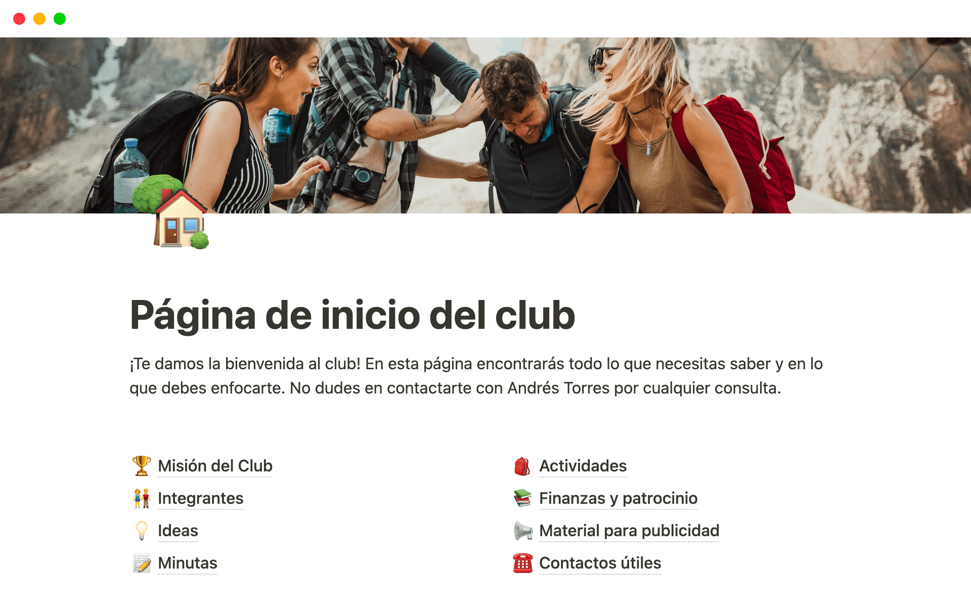 School isn't just about school these days — if you're running a club or managing a group project, this template can help you capture all of your team's knowledge. You can keep your mission statement, tasks, and sponsorship apps neatly organized in this homepage. Share it with current and future team members so they can find everything they need to push projects forward.