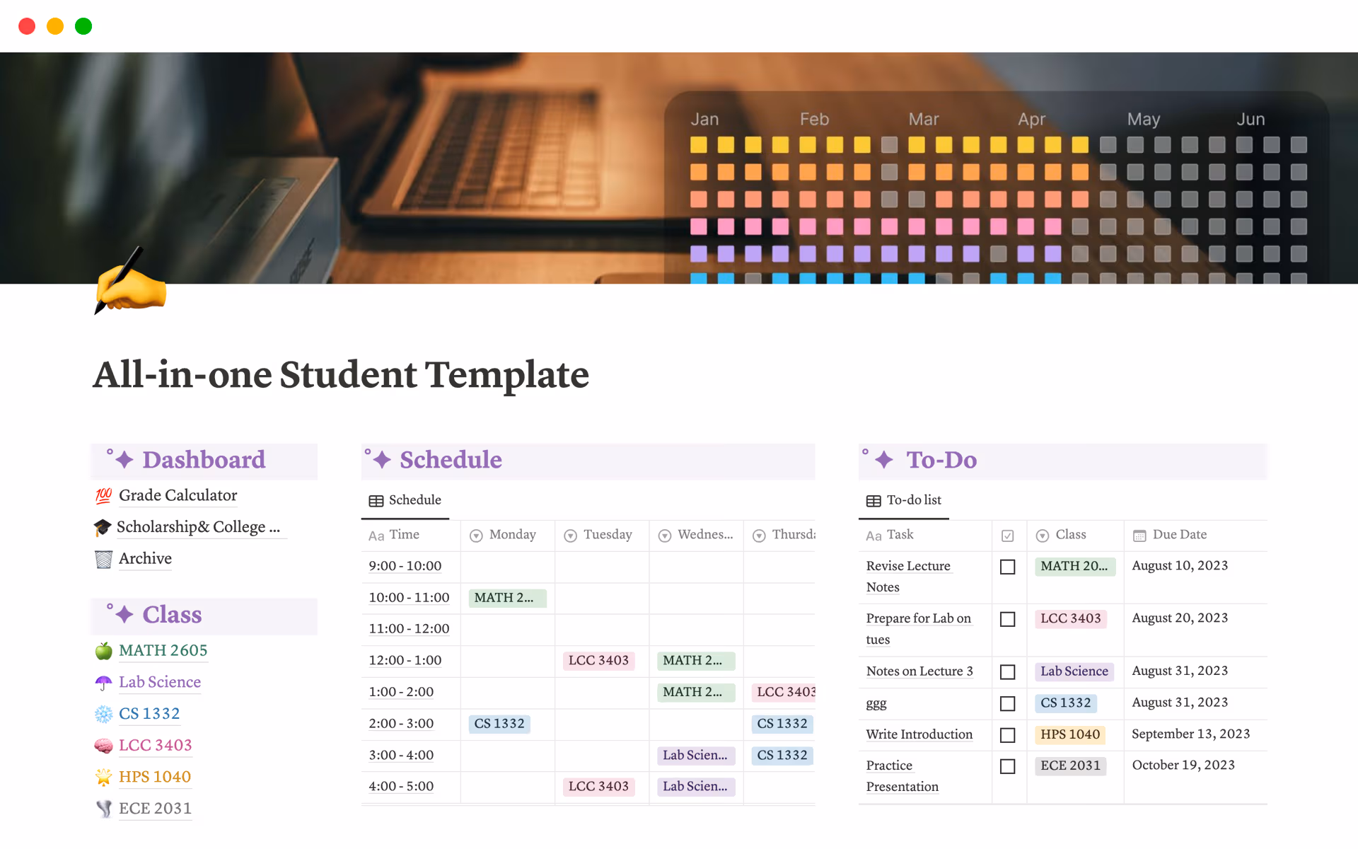 loving this for my uni prep, it is easy to edit, simple, looks good and I didn't have trouble personalising it to my needs. so glad its free too!L