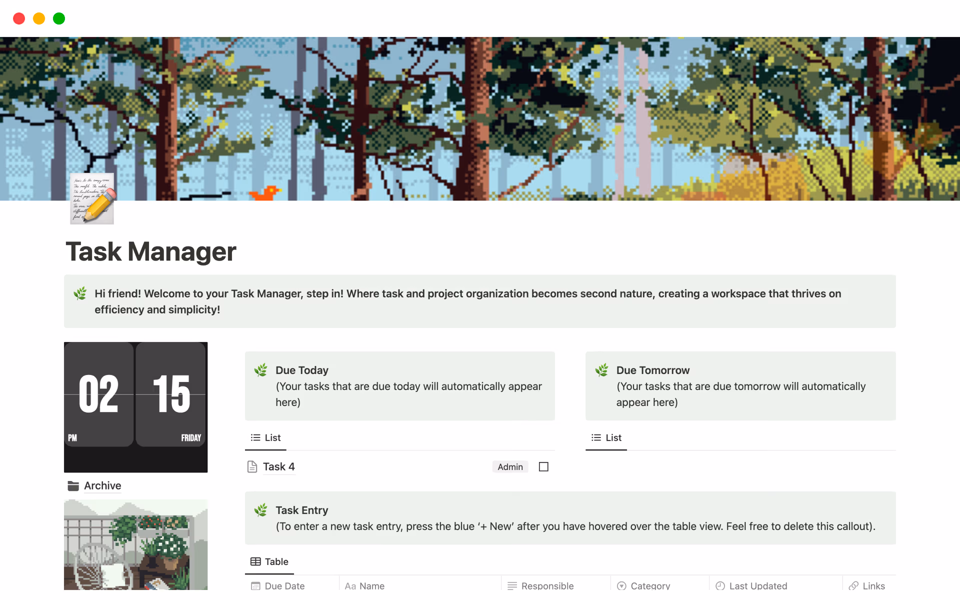 I really love the way this task manager is set up. It gives you multiple views of each task and project! I love how it feels professional but personal. Great job, and I totally recommend it!A